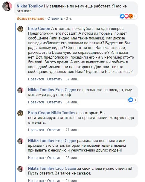 И чем вот этот донос принципиально отличается от доноса, по которому был посажен Стомахин? Тем, что человек требует не посадки, но штрафа? Только-то?