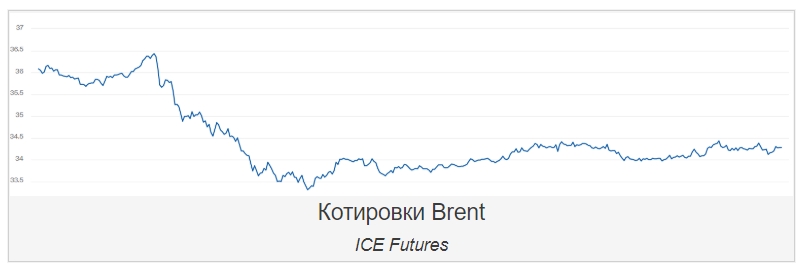 На открытии торгов утром стоимость фьючерсов Brent на лондонской бирже ICE Futures достигла 34,28 доллара за баррель, что на 4,5% ниже уровня закрытия предыдущей сессии.