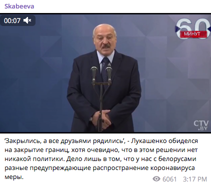 Лукашенко: "Друг познается в беде. Все быстренько закрылись. На что я вас ориентировал: выживать надо, как будто ты один в мире". Иногда у меня складывается впечатление, будто от Лукашенко скрывают то, что происходит в мире. Как будто Беларусь живет в своем отдельном мире pic.twitter.com/v56LmxldUc