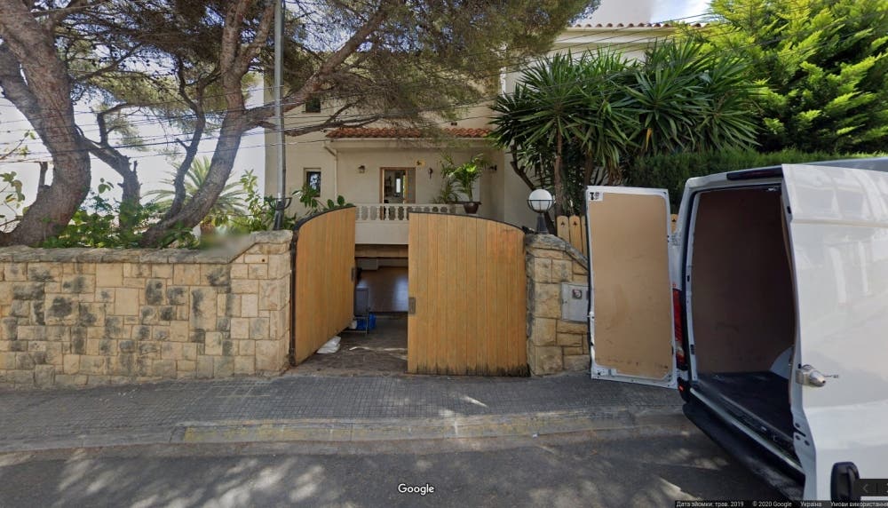С помощью сервиса Google Maps удалось найти испанское жилье Шария. Действительно, особняк расположен на так называемой первой линии – от пляжа его отделяет только полоса зеленых насаждений. На территории виллы есть бассейн и небольшой сад.