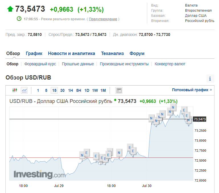 Как сообщалось, в России резко упала стоимость рубля. Курс доллара впервые с 18 мая преодолел отметку 73 руб./$, а евро взлетел выше 86 руб./евро – впервые с 2 апреля.