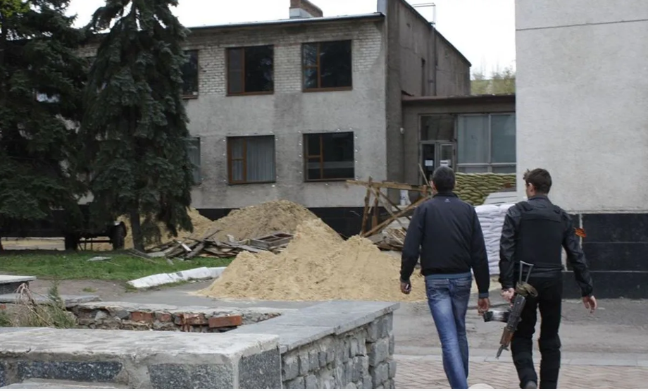Захваченный стрелковцами исполком Славянска.
