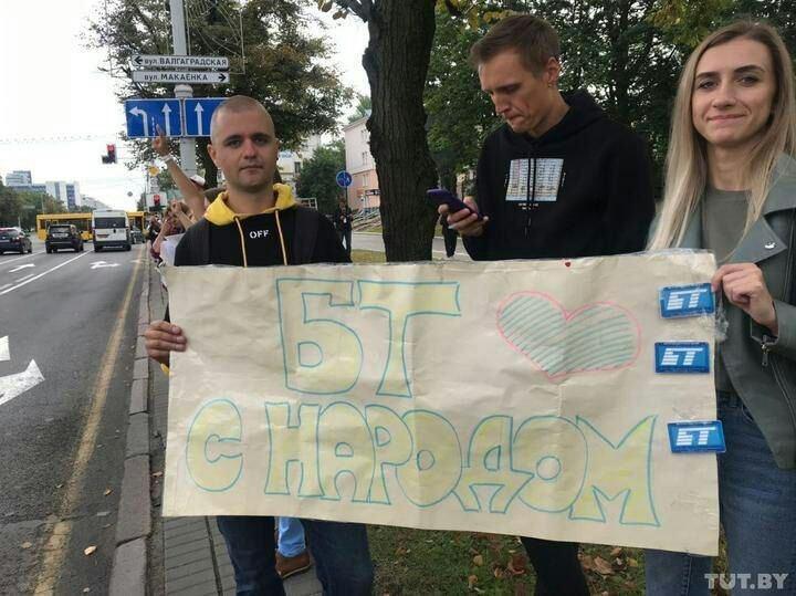 После митинга рабочие отправились к «белорусскому Останкино» — зданию Белтелерадиокомпании. Работники которого, к слову, тоже объявили забастовку: новости не выходят, а в эфире белорусского ТВ крутят старые фильмы и записи передач.