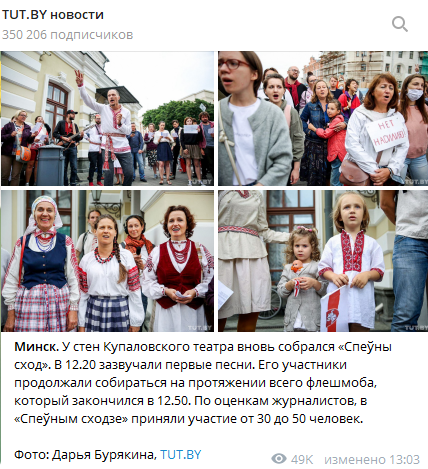 Что касается 50 медийщиков, которые вышли на улицы, то они выстроились в шеренгу на пересечении проспекта Независимости и улицы Макаенка. 19 августа тех, кто объявил забастовку, перестали пускать в здание телецентра.