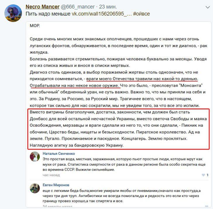 Цитата из соцсетей ОРДЛО: