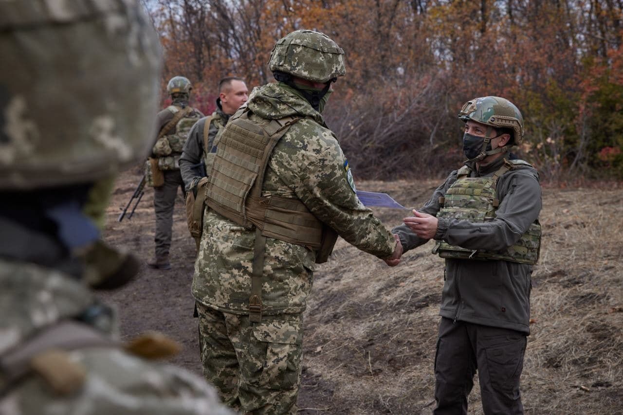 "Я уверен: благодаря стойкости наших героев это обязательно произойдет с временно оккупированным Донбассом. Благодарю вас за службу. Берегите себя, наши семьи и Украину в целом", – сказал Зеленский.