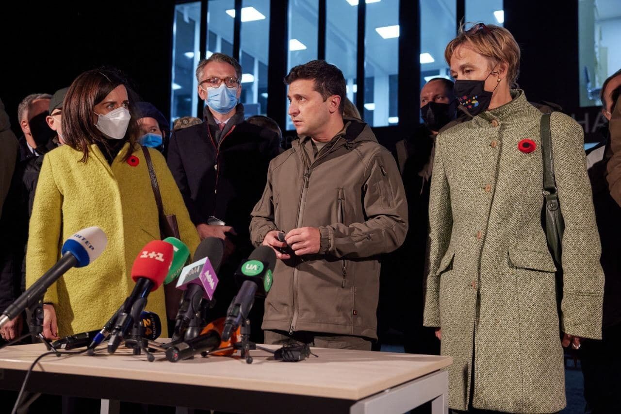 На Донбасс вместе с Зеленским прибыли главы дипломатических представительств Канады, Германии, Франции, Швеции, США и Великобритании, а также руководители международных организаций, аккредитованных в Украине.