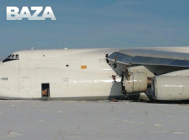 Более того, двигатель «Руслана» отвалился во время полета и пробил крышу склада, который находится вблизи аэропорта «Толмачево». На фото, сделанных очевидцами, видно дыру в крыше и фрагмент двигателя, лежащий на полу. Еще обломки нашли в поле.
