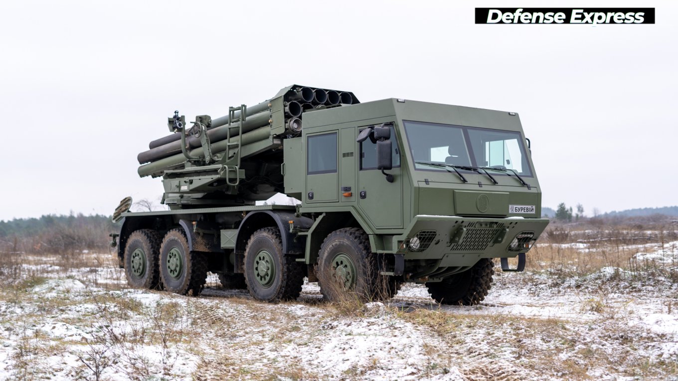 РСЗО "Буревий" изготовлена на Шепетовском ремонтном заводе и оснащена цифровой системой управления огня, включая систему обмена информацией на поле боя, а информация передается в режиме онлайн.