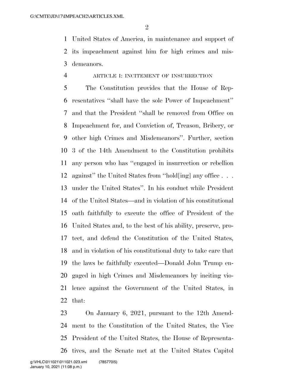 "Он поставил под угрозу целостность демократической системы, помешал мирной передаче власти и поставил под угрозу правительство. Тем самым он предал свое доверие как президента, нанеся очевидный вред народу Соединенных Штатов", – сказано в документе.