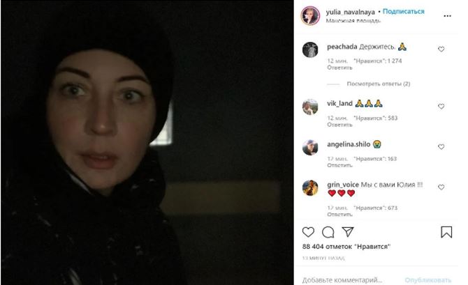 "Извините за плохое качество. Очень плохой свет в автозаке", – уже позже написала Навальная в своем Instagram прямо из автозака.