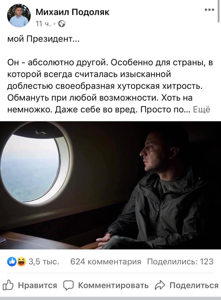 Народный депутат Гео Лерос заявил, что под публикацией в социальной сети советника главы Офиса президента Михаила Подоляка про день рождения Владимира Зеленского ставили лайки боты со всего мира. Об этом депутат рассказал на своей странице в Facebook.