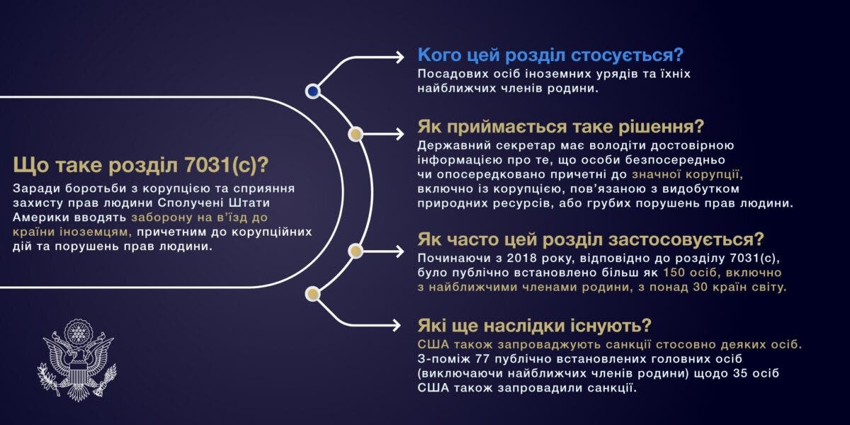 Будучи официально на посту губернатора Днепропетровской области Украины в 2014–2015 годах, Коломойский был причастен к коррупционным действиям, которые подорвали верховенство права и доверие украинской общественности к демократическим институтам своего правительства и общественным процессам, включая использование своего политического влияния и официальной власти для его личной выгоды", – заявил Блинкен.