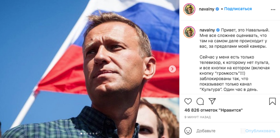 "Вы шли вчера со мной, ну а я сегодня буду лежать на шконке и представлять, как иду с вами и за вас", – написал Навальный. Он добавил, что вышедшие на акции и поддержавшие их – "спасение России".