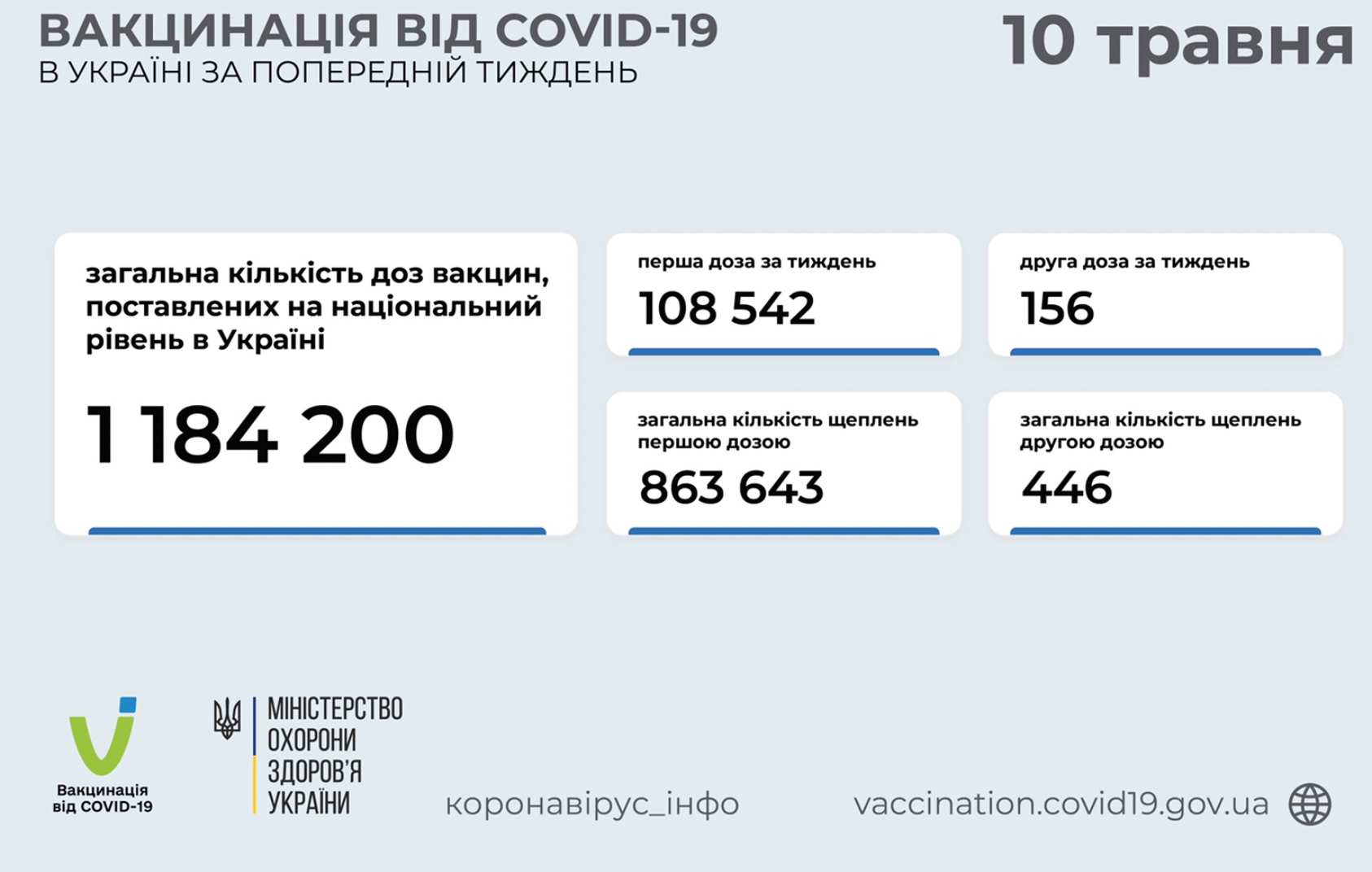 Это значит, что в Украине, с населением в 40 миллионов человек, вакцинировано одной дозой 863 543 человек, а полностью вакцинировано аж 446 (четыреста сорок шесть) человек.