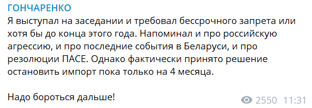 Об этом также сообщил депутат Алексей Гончаренко. Нардеп отметил, что присутствовал на заседании и требовал ввести запрет до 31 декабря года, однако решение предварительно принято на четыре ближайших месяца.