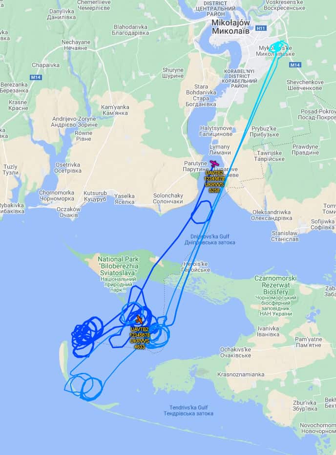 По данным сервисов мониторинга воздушного пространства, Bayraktar TB2 летал преимущественно над водной частью полигона и лишь несколько раз над самим островом.