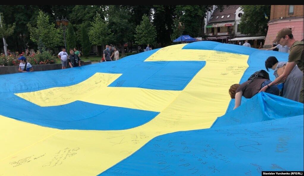 4. Жители Винницы оставили свои подписи на большом полотнище крымскотатарского флага. Мероприятие состоялось в рамках Всеукраинской акции к 30-летию возобновления деятельности Курултая крымскотатарского народа и Дню крымскотатарского флага, который отмечается 26 июня