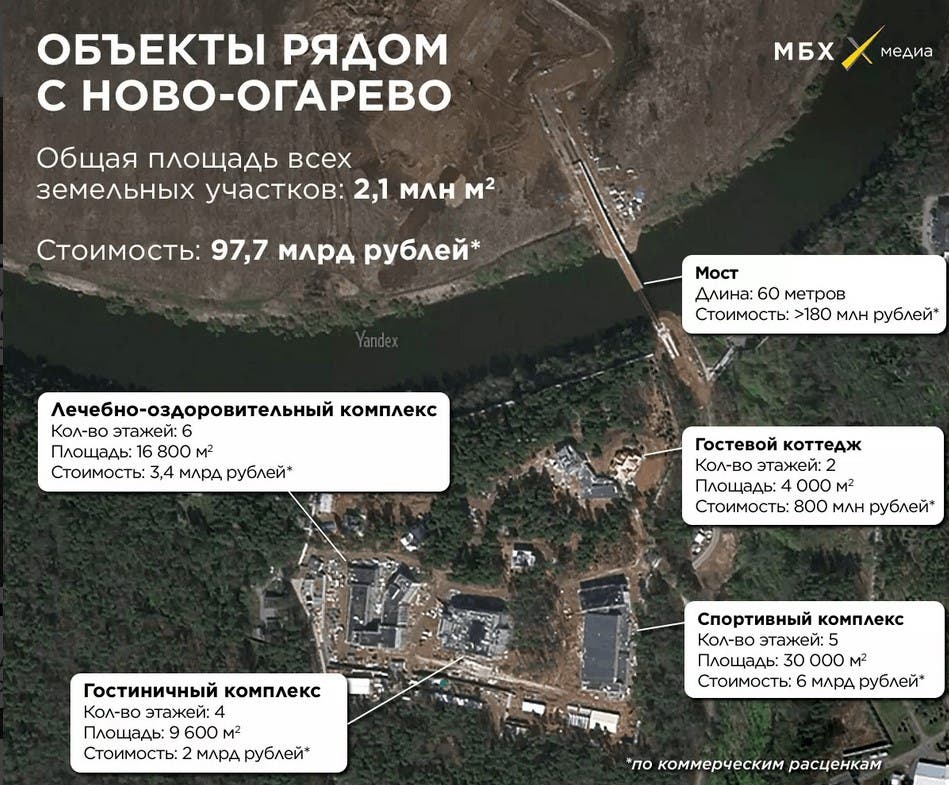 Рядом с резиденцией президента России Владимира Путина в Ново-Огарево под Москвой проводится масштабное строительство стоимостью до 50 миллиардов российских рублей (около 6,7 миллиардов долларов). Об этом сообщается в расследовании российского издания «МБХ медиа».