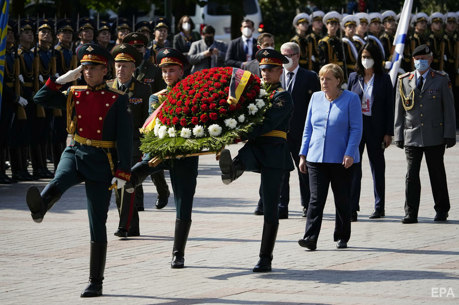 Перед началом официальной встречи Меркель приняла участие в церемонии возложения венка к могиле Неизвестного Солдата в Александровском саду в российской столице.