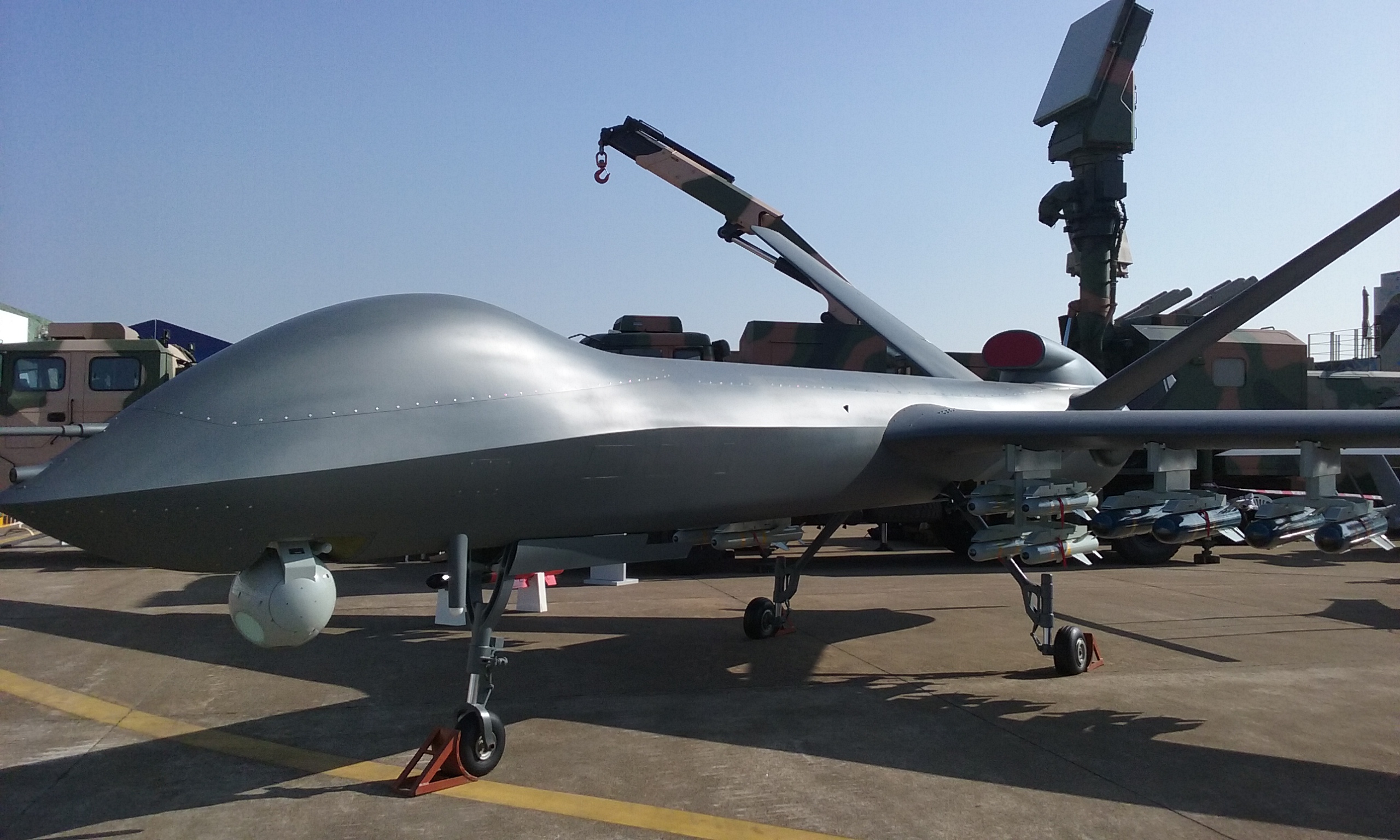 Средневысотный разведывательно-ударный беспилотник из Китая. Rainbow-5 может нести до 16 ракет класса "воздух-земля" или других высокоточных боеприпасов общей массой до 900 кг. Размах крыльев – 21 м, максимальная скорость – 400 км/ч. Без дозаправки будет держаться в воздухе целых 60 часов.
