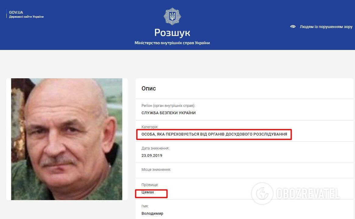 Сегодня Владимир Цемах находится в розыске, который объявила Служба безопасности Украины по подозрению в создании террористической группы или организации (за это грозит до 15 лет лишения свободы с конфискацией имущества). Информация об этом есть в розыскной базе МВД.