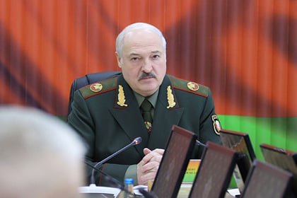 Белорусский узурпатор Лукашенко появился на совещании в Министерстве обороны страны в военной форме с нелепыми погонами — на них размещены не звезды, как у всех военнослужащих, а герб-капуста.