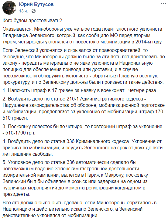 Лукаш напоминает об известной истории о том, что Зеленский в свое время избегал призыва на военную службу.