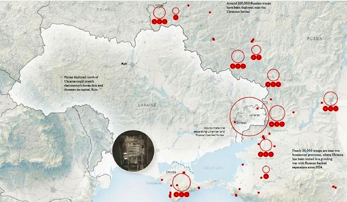 Войска России окружили Украину с трех сторон, в частности в районе легкой досягаемости Киева. Об этом сообщило издание The New York Times.