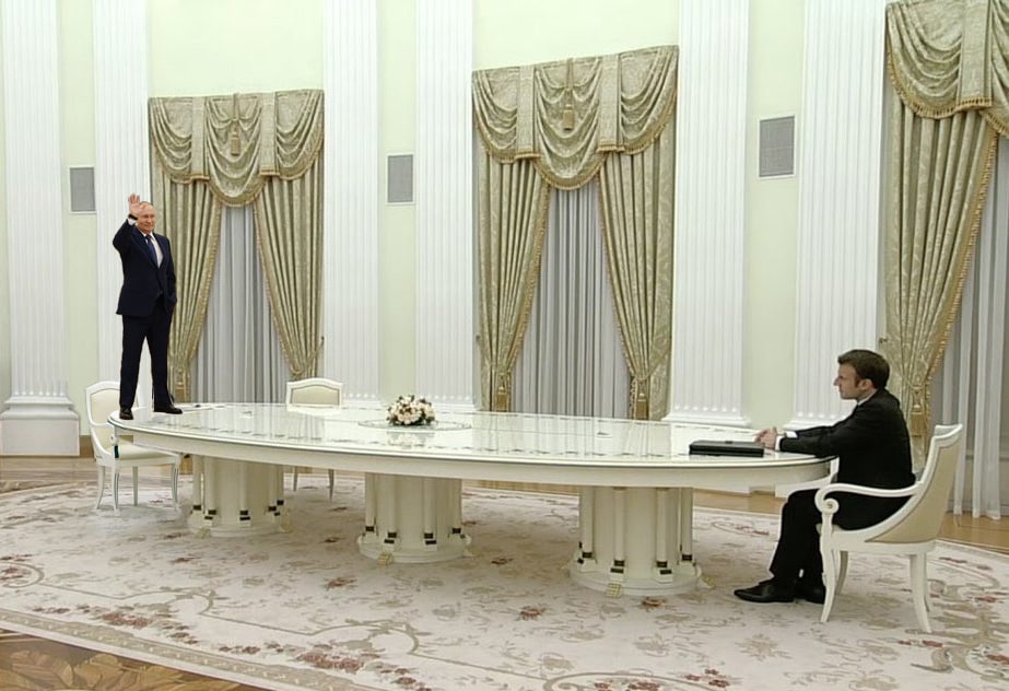 Некоторым даже показалось, что такая длина стола недостаточна для культурной, национальной и экономической пропасти между президентами Франции и России, поэтому создали следующий вариант: