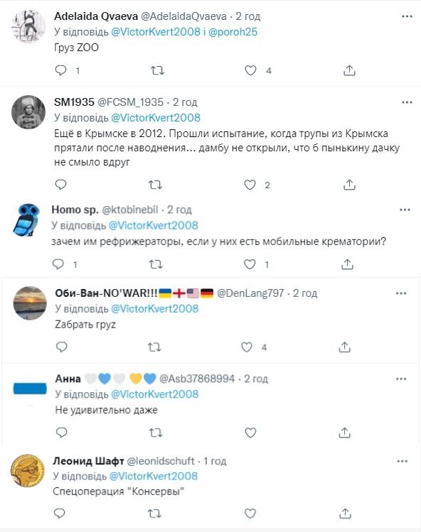 А вот для вывоза трупов россия отправила в Украину колонну рефрижераторов, которую прикрыли "гуманитаркой".