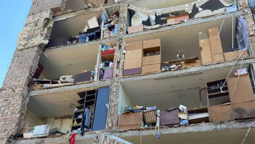 На опубликованных фотографиях, показан разрушенный дома, стена которого полностью обвалилась.