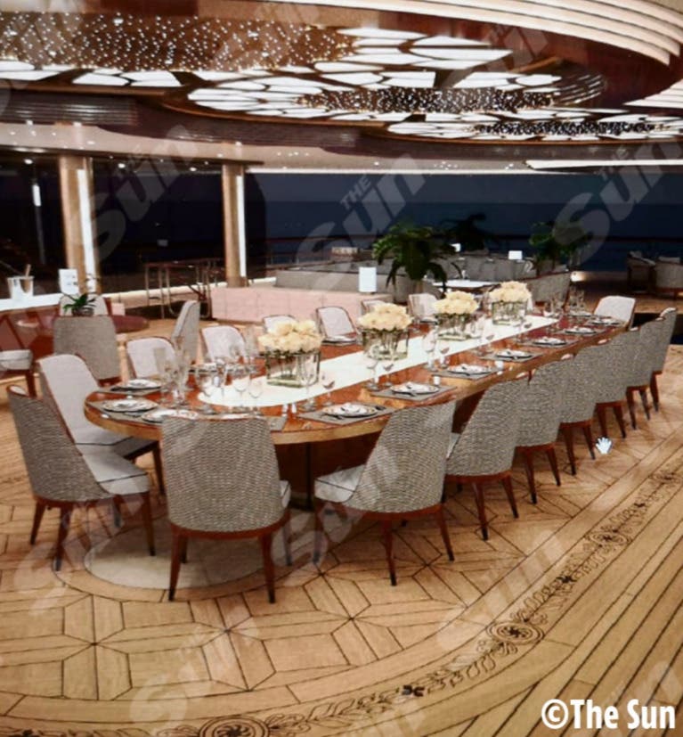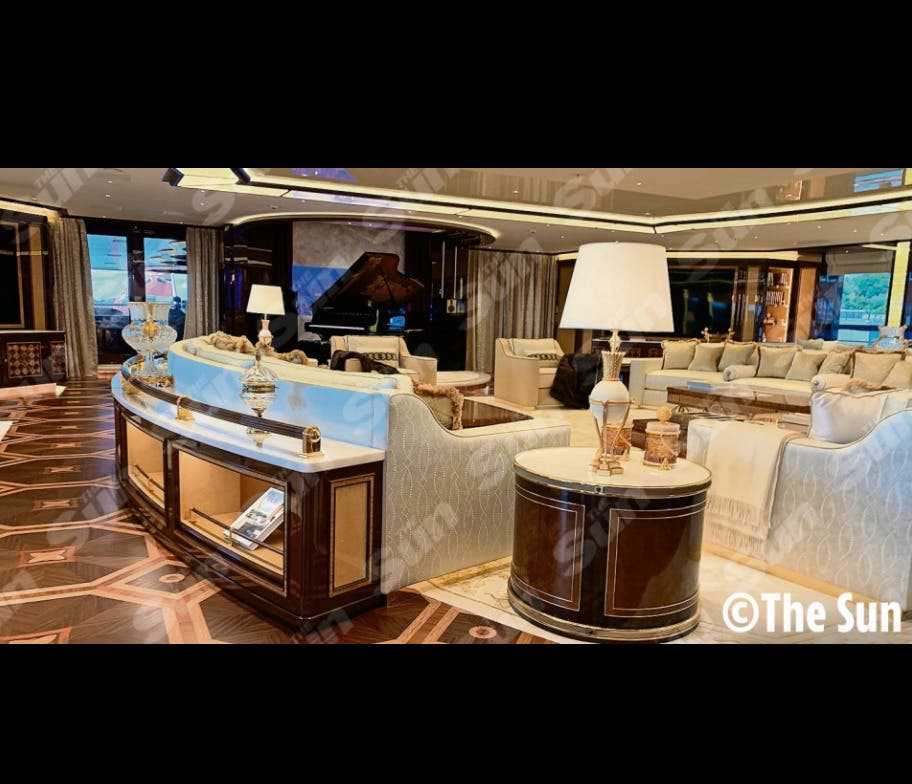 Рабочий, который помогал при строительстве яхты, рассказал, что все поверхности отделаны мрамором или золотом. На борту есть бесчисленное количество бассейнов, СПА, сауна, театр, бальные залы, тренажерный зал, две вертолетные площадки. Все напоминает мини-город.