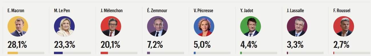 На предыдущих выборах в 2017 году Макрон и Ле Пен тоже были главными соперниками. Тогда Макрон набрал в первом туре 24% голосов, Ле Пен — более 21%.