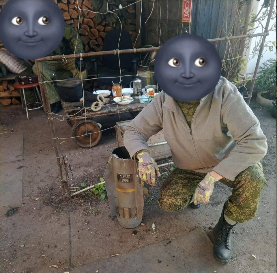 Отмечается, что никакой тайны для врага не осталось, потому что сами оккупанты и показали обломки Brimstone. Россиянин принес хвостовую часть ракеты в импровизированную столовую для того, чтобы сделать коллективное фото.