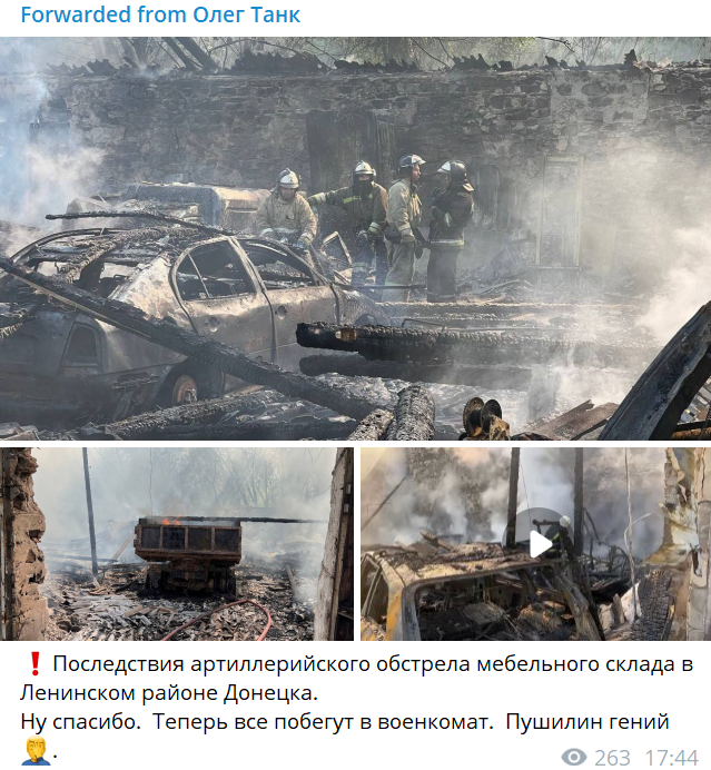 Так, в социальной сети член НВФ «ДНР» Олег Танк отмечает, что, обстреливая Донецк, так называемый «глава ДНР» Денис Пушилин пытается побудить местных мужчин идти воевать против Украины. Он пишет: