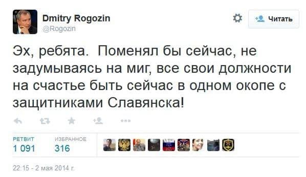 Как раз самое время Рогозину отправиться в Славянск. Исполнить свою давнюю мечту.