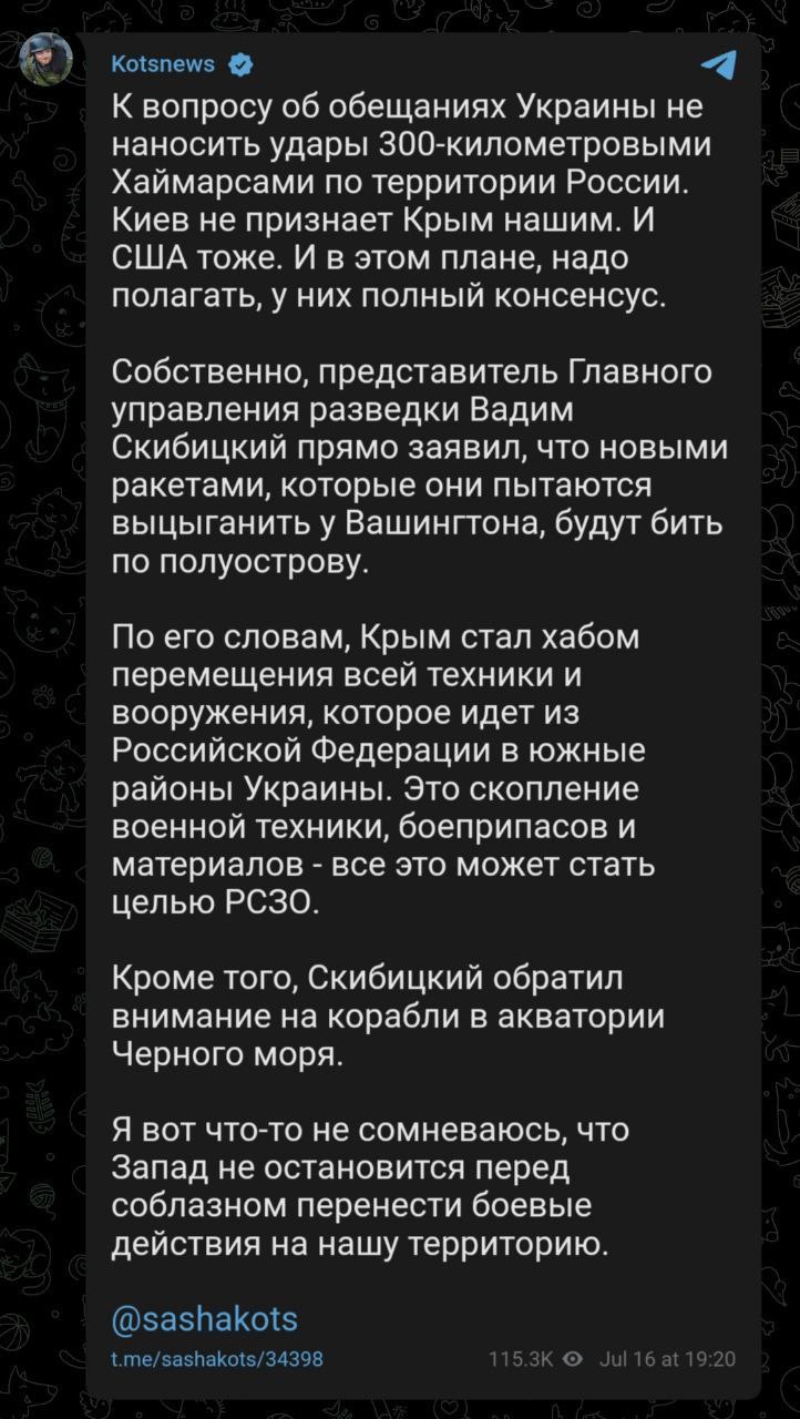 Об этом сказал представитель Главного управления разведки Министерства обороны Украины Вадим Скибицкий в эфире национального телемарафона 16 июля. Он отметил, что Крым стал хабом перемещения всей вражеской техники и вооружения.