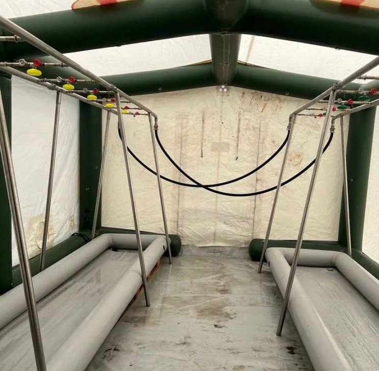 Он также разместил фото палатки и "графика помывки населения", на котором написано, что с 10.30 до 13.00 могут помыться женщины и дети, а с 13.00 до 15.00 – мужчины.