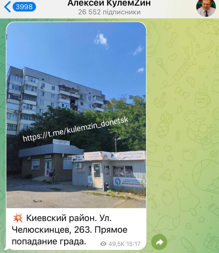 Российская армия обстреляла Донецк и спалилась. Один из снарядов попал в жилой дом четко с восточной стороны и разрушил две квартиры. Попасть в эту часть дома с украинских позиций невозможно. Так прилететь могло только со стороны Макеевки или Калининского района Донецка, которые с 2014 года контролируются Россией.