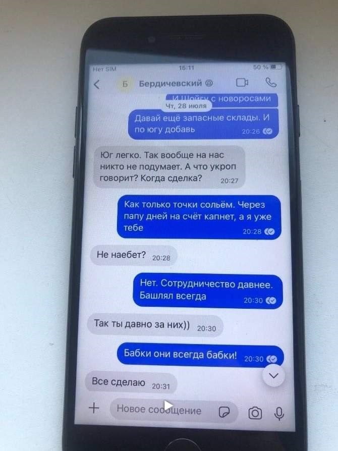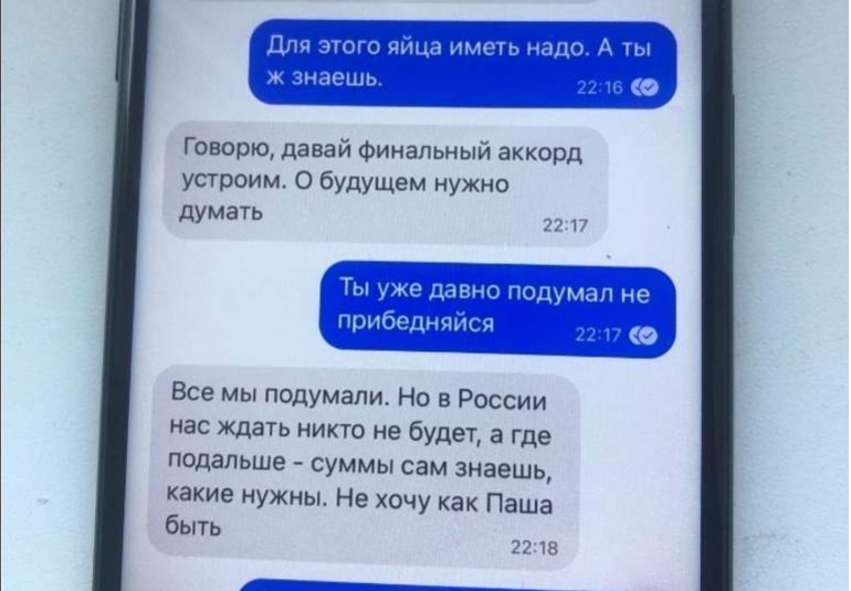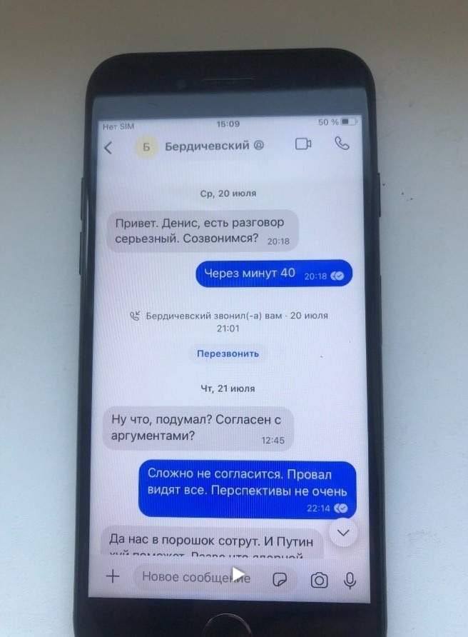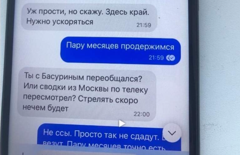 Фотографии переписки Пушилина, сделанные с его телефона, опубликовал 24 канал.