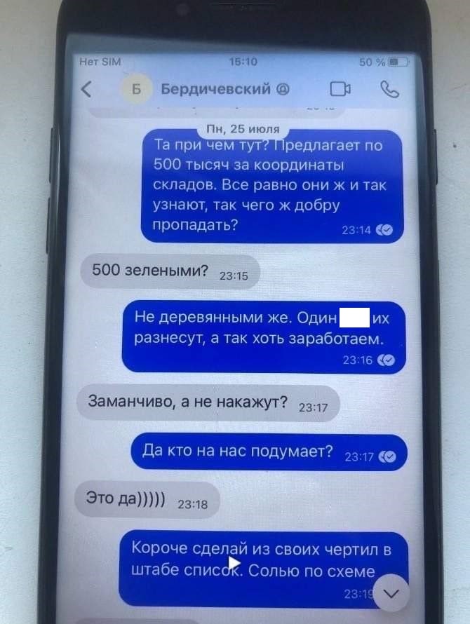 Уже 25 июля главарь “ДНР” сообщил подельнику о том, что якобы представитель Украины предложил ему по полмиллиона долларов за координаты российских складов.