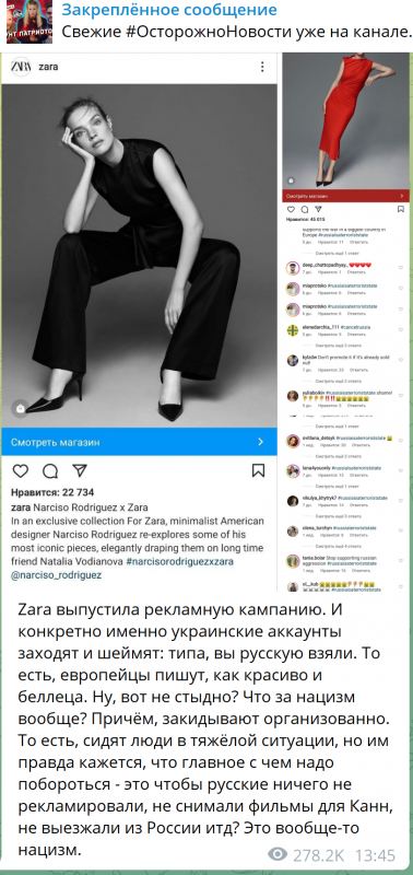 "Именно украинские аккаунты заходят и шеймят – типа вы русскую взяли. Не стыдно? Что за нацизм вообще? Причем закидывают организованно. Сидят люди в тяжелой ситуации, но им кажется, что главное, с чем надо побороться, – это чтобы русские ничего не рекламировали, не снимали фильмы для Канн, не выезжали из России? Это вообще-то нацизм", – написала Собчак.