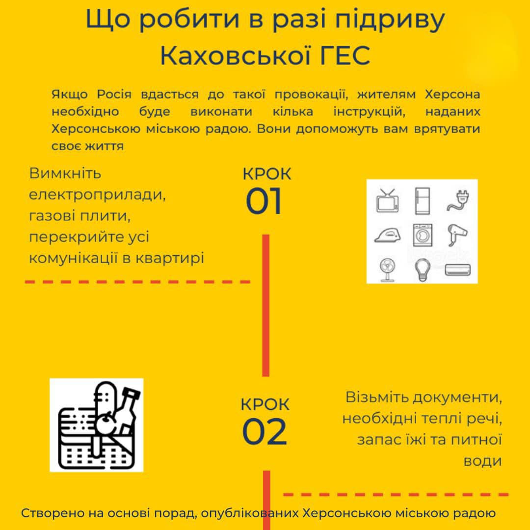 Российские военные преступники якобы совершили подрыв Каховской гидроэлектростанции, что в нескольких километрах от временно оккупированного города Новая Каховка Херсонщины. В результате разрушения дамбы произошло повышение уровня воды ниже по течению водохранилища.