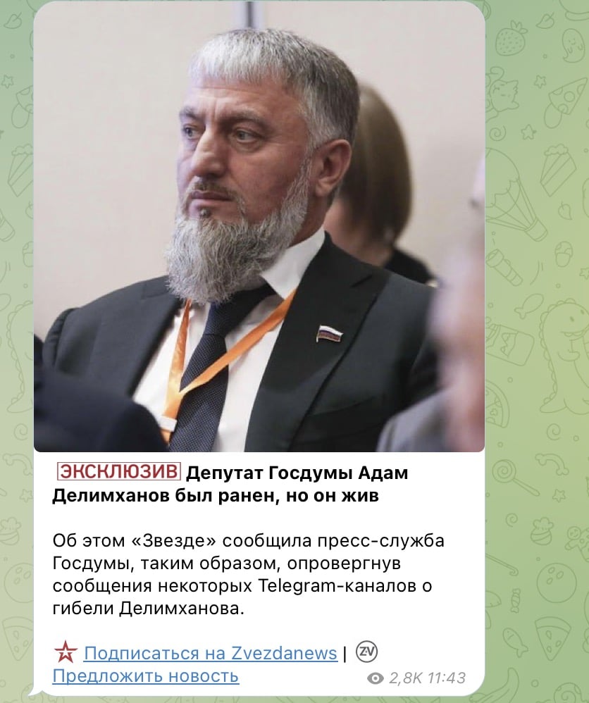 - В текущей версии новости утверждается, что «официального подтверждения [ранения Делимханова] не поступало».