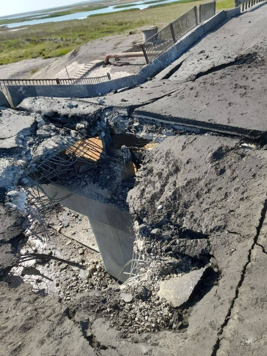 Вооруженные силы Украины нанесли удар по мосту через пролив Тонка, соединяющий Геническ с Арабатской стрелкой. Об этом сообщил гауляйтер Херсонщины Владимир Сальдо.