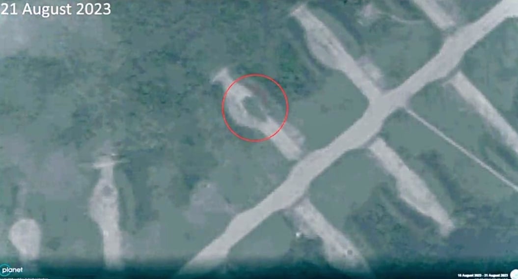 На кадрах 21 августа видны «остатки» сожженного бомбардировщика в виде обгоревшего следа на земле. Также бросается в глаза отсутствие остатка Ту-22М3.