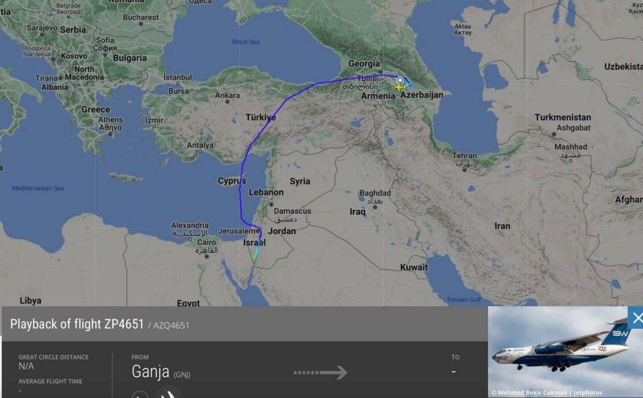 Также зафиксировано интенсивное движение транспортных самолетов из Турции и Израиля в Азербайджан