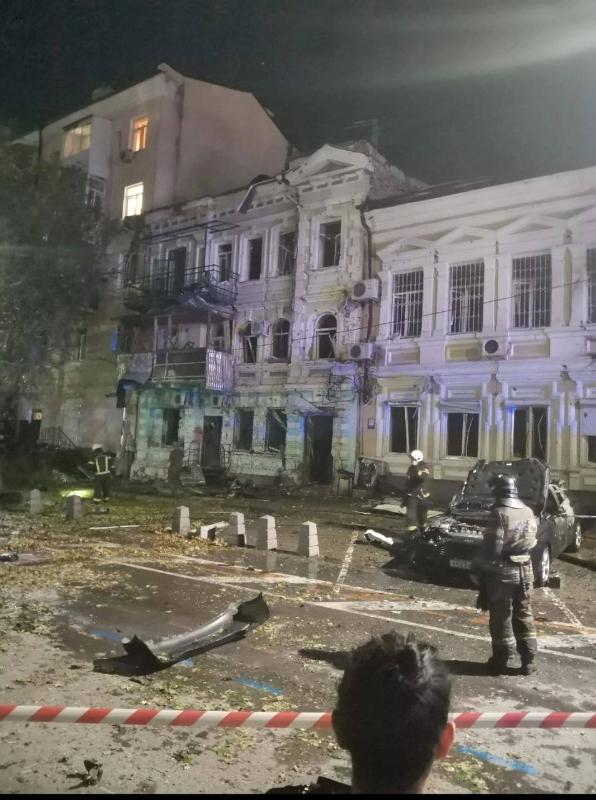 Один из беспилотников якобы упал в центре, в районе ул.Пушкинская, 42. В результате повреждено несколько легковых автомобилей. Пострадал один человек, от госпитализации он отказался. Позже стало известно, что выбиты окна как минимум в трех зданиях.