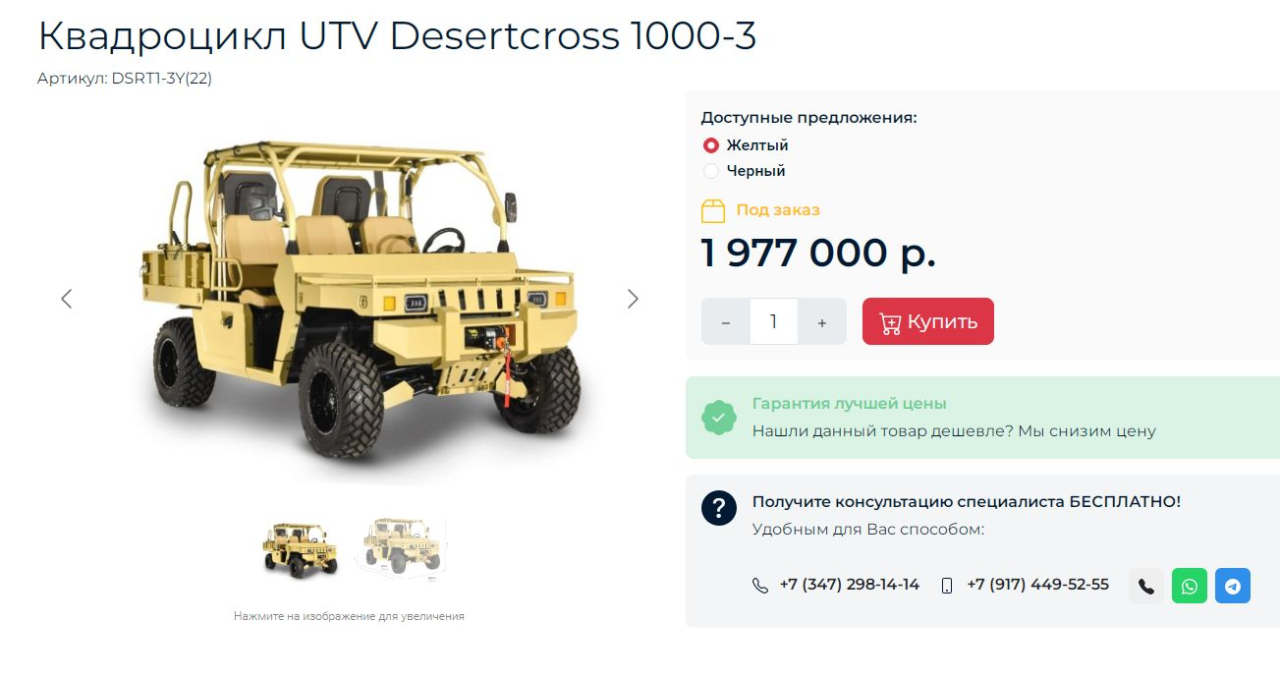 Речь идет о мотовездеходах UTV DesertCross 1000−3, которые, как утверждают в ВС РФ, предназначены, в том числе и для «разведывательных действий», и «рейдовых операций».